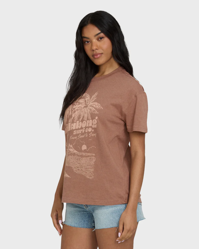 From early coffee runs to sunset drives home salty, the Sand to Surf tee keeps things easy. Cut in a classic crew shape, this short sleeve graphic tee is made of soft knit 100% cotton in a washed Brown Stone tone that feels like it’s already lived a few summers. Wear it tossed over your bikini, half-tucked into cutoffs, or layered under a beat-up jacket when the breeze rolls in. Simple, comfy, ready for whatever tide you’re on today. Featured here in the Brown Stone colorway.