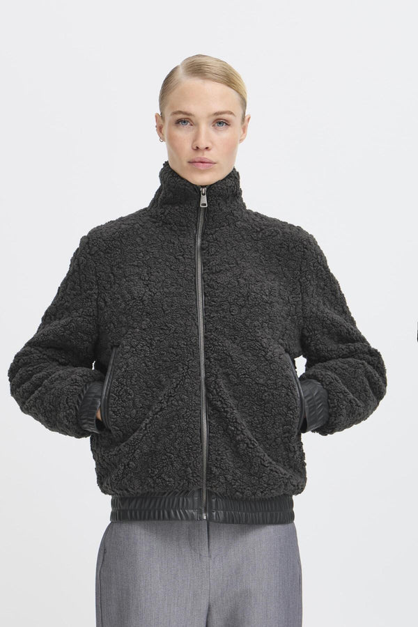 This Anamaj bomber jacket combines comfort and style with its soft teddy material and high neck design. The front zip offers easy wear, while the faux leather elasticated waist provides a tailored fit. Practical pockets accented with faux leather detail add both functionality and a refined touch, making this jacket a versatile and sophisticated choice for cooler days.
