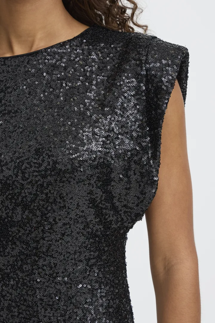FAUCA dress delivers sophisticated elegance with its sleek black sequin construction and minimalist silhouette. This sleeveless mini style features a full back zip for effortless dressing and a polished finish that transitions seamlessly from evening events to upscale occasions. The sequin detailing catches light beautifully, creating subtle dimension and movement with every step. Perfect for those seeking a refined, statement piece that balances glamour with understated design.