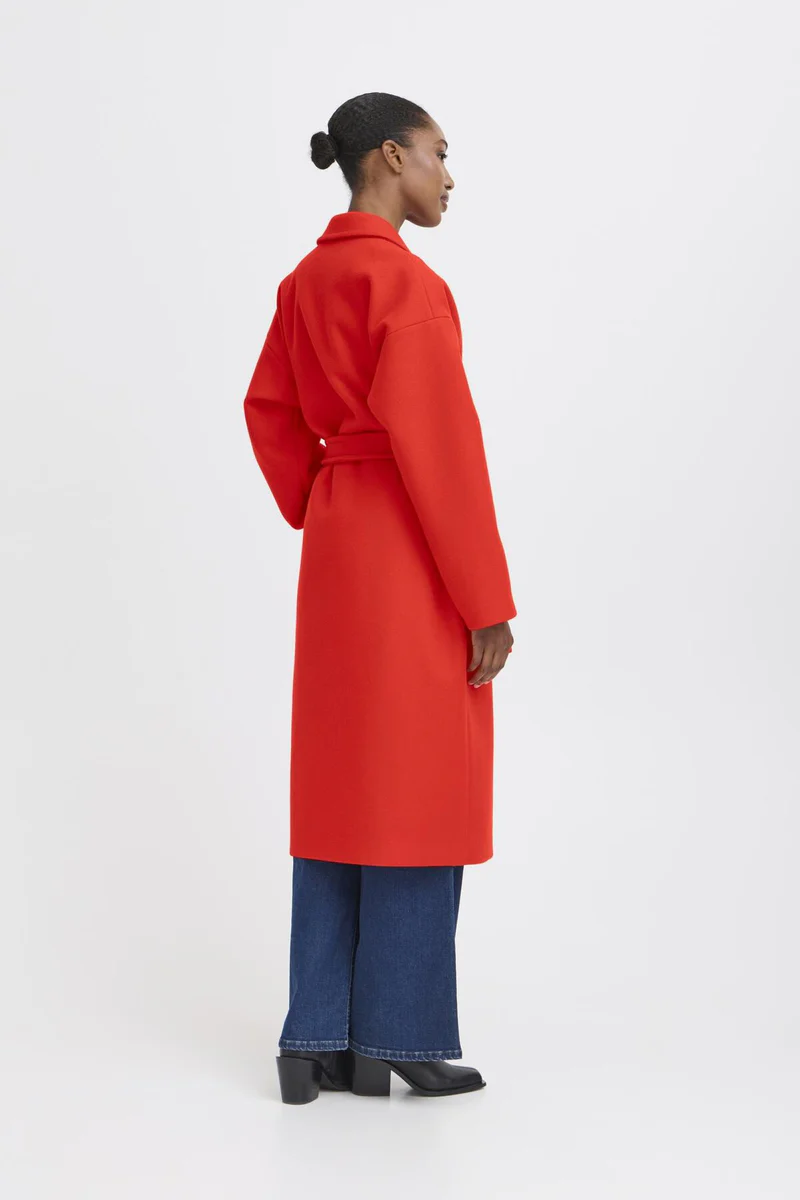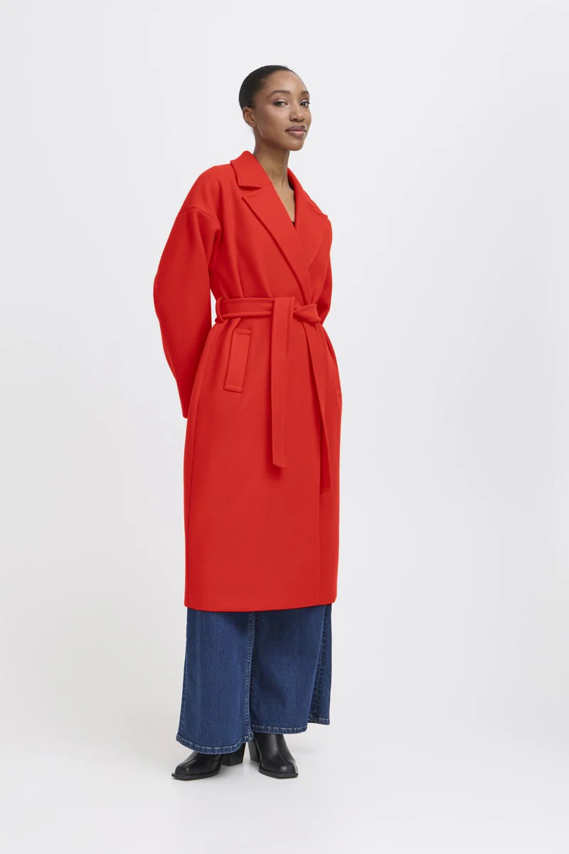 Stay warm and stylish with the Jannet Jacket by Ichi. This fiery red jacket combines fashion and function, perfect for any occasion. Crafted with high-quality materials, it is sure to keep you cozy and looking your best. Elevate your wardrobe with this must-have piece.