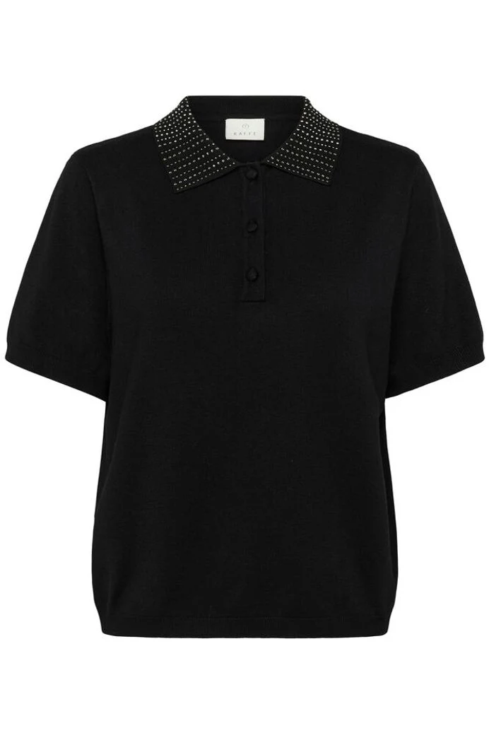 This stylish knitted top by Kaffe features a regular fit and a classic polo neck with decorative gem collar. Short sleeves and soft material ensure comfort. Ideal for both day and night, this versatile style offers refined simplicity and ultimate style..
