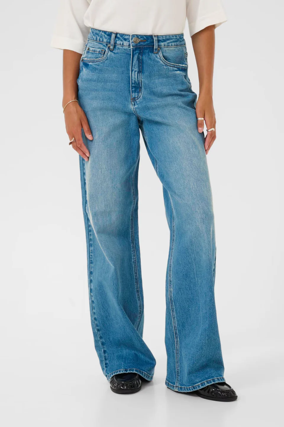 Kaffe denim offers a flattering, fashion foward denim that will instantly elevate your style. Featuring a high-rise fit, relaxed leg, and classic five-pocket design, effortless mid-wash and the perfect blend of strutcure and stretch. The Meadow denim is ideal for casual or buisness casual wear, and a style that you'll love.