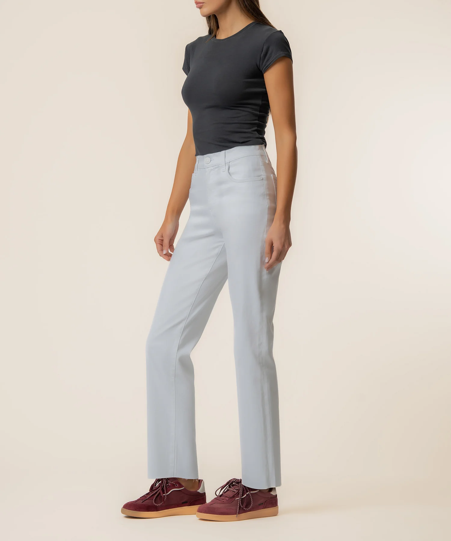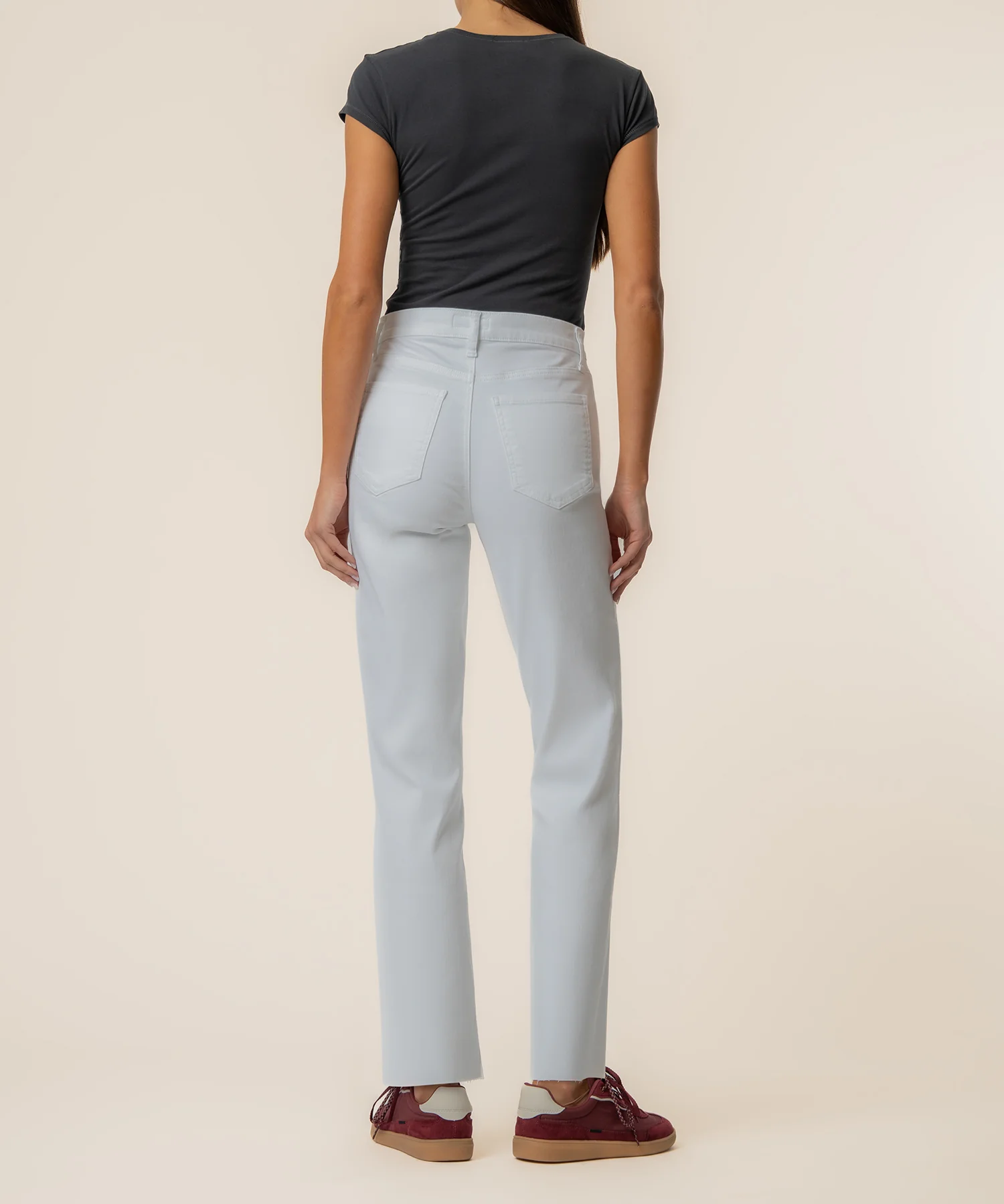 Designed to flatter and move with you, these high-rise jeans feature innovative Fab Ab pockets that enhance shape and provide a smooth, supportive fit. The high-rise waist pairs effortlessly with an easy straight leg silhouette for a timeless, versatile look. Finished with a modern raw hem, these jeans deliver a casual, lived-in edge. Crafted from super stretchy denim, they offer all-day comfort without losing their structure, making them perfect for everyday wear.