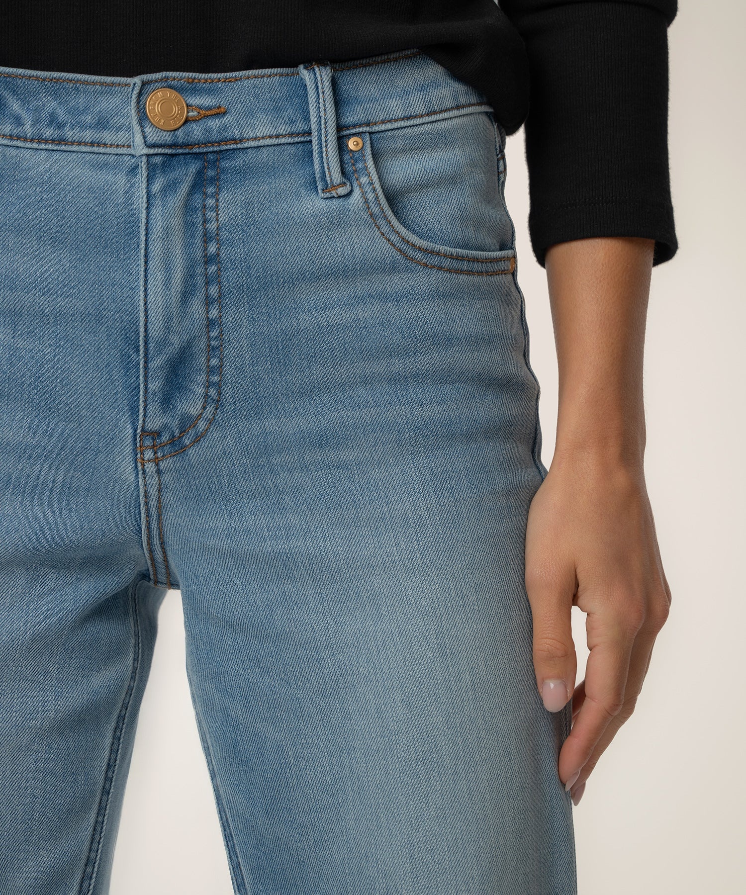 - These high-rise straight leg jeans blend style and comfort effortlessly, featuring flattering Fab Ab pockets that shape and smooth. The classic medium wash pairs perfectly with the timeless 5-pocket design, while the super stretchy fabric keeps you moving freely. A modern essential that’s as comfortable as it is confident.