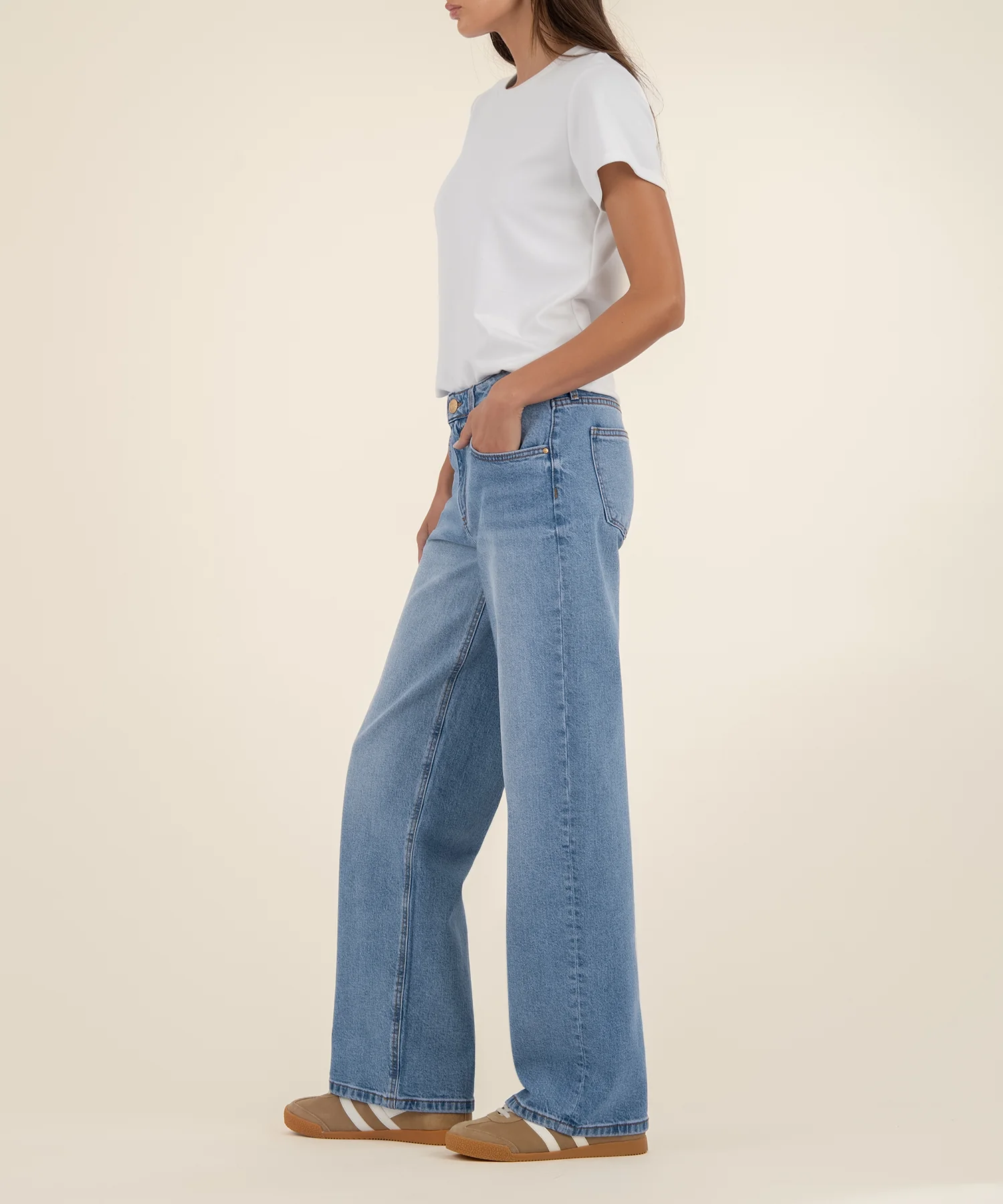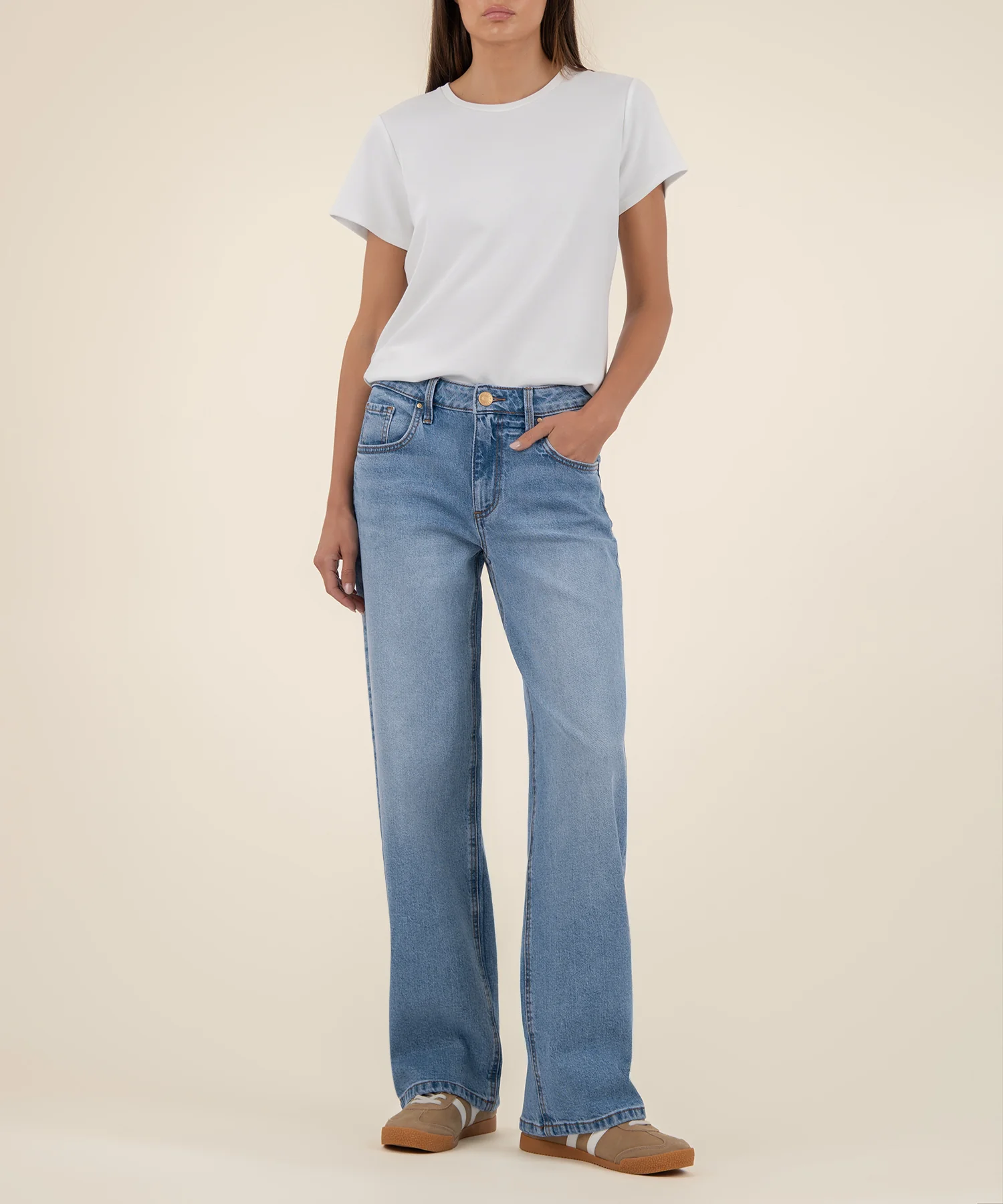 - Go for effortless cool with these low rise, baggy jeans featuring a relaxed straight leg and easy light wash. Made from super stretchy material, they offer unbeatable comfort and laid-back style. Perfect for casual days with a touch of throwback vibe.