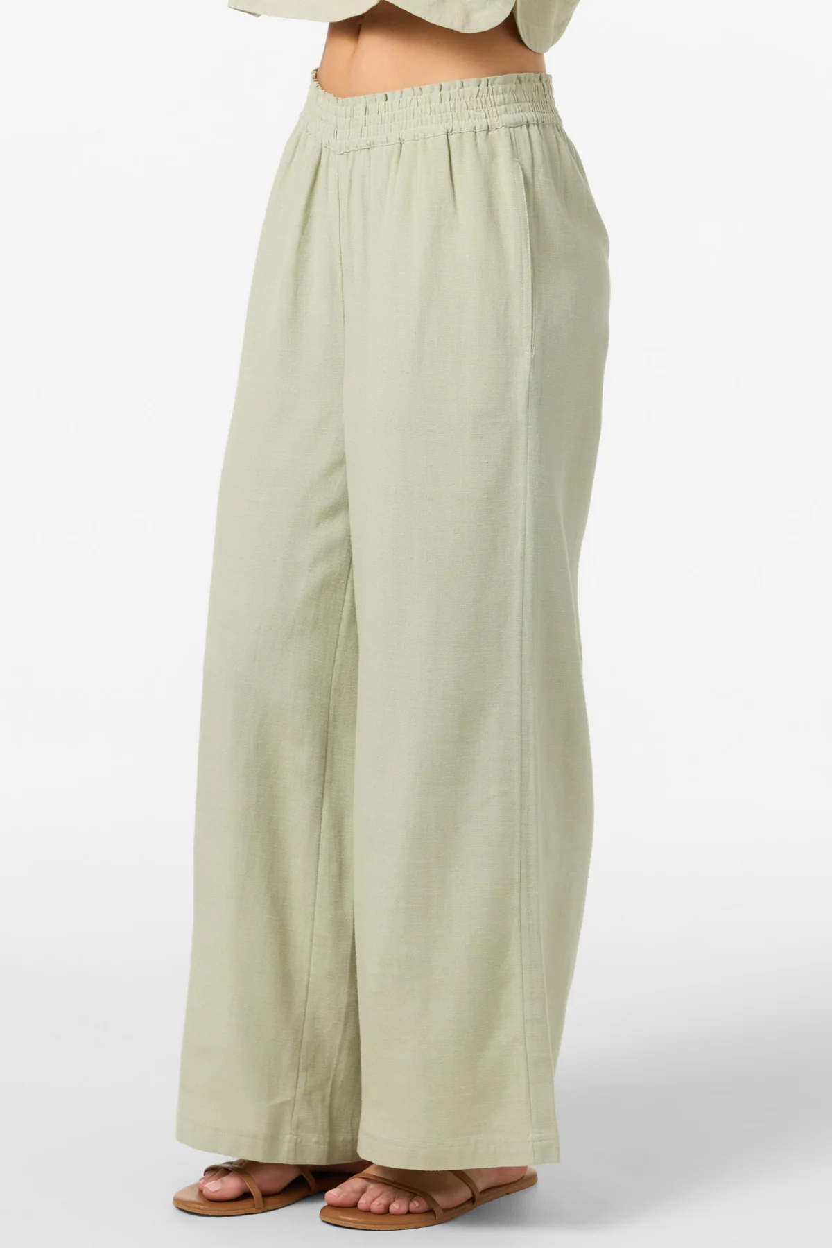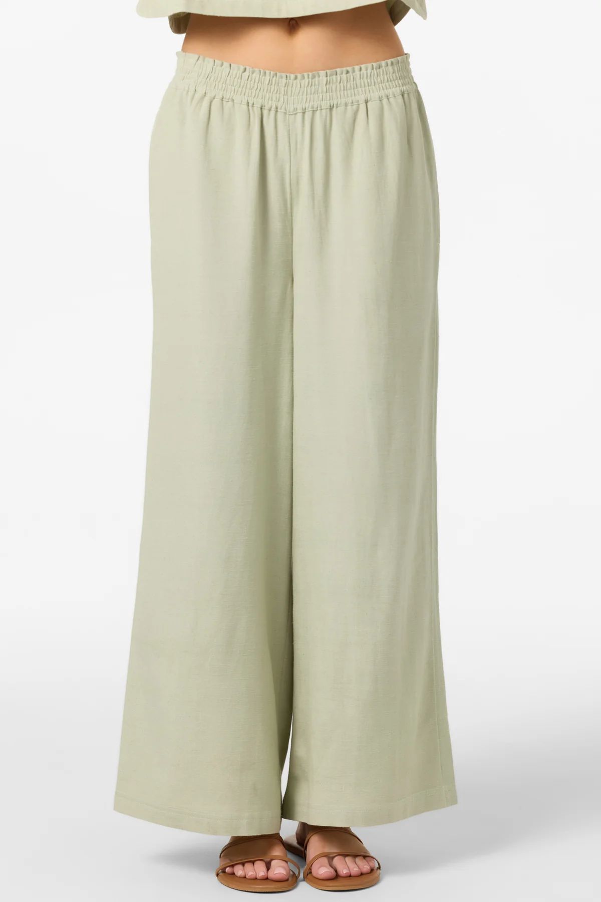 Comfortable, breathable, and stylish, the O’Neill Sanders Woven Pull-On Pant is perfect for casual outings or relaxed summer days. Made from a lightweight 55% viscose, 30% cotton, and 15% linen, these pants offer a soft, airy feel that moves with you. Featuring a smocked waistband with self ruffle for a flattering, adjustable fit and a 26'' inseam, they provide relaxed coverage and a versatile silhouette that pairs easily with tanks, tees, or blouses.