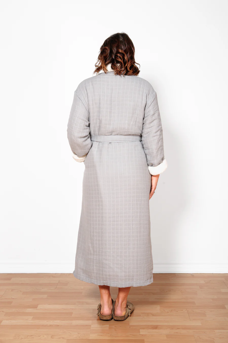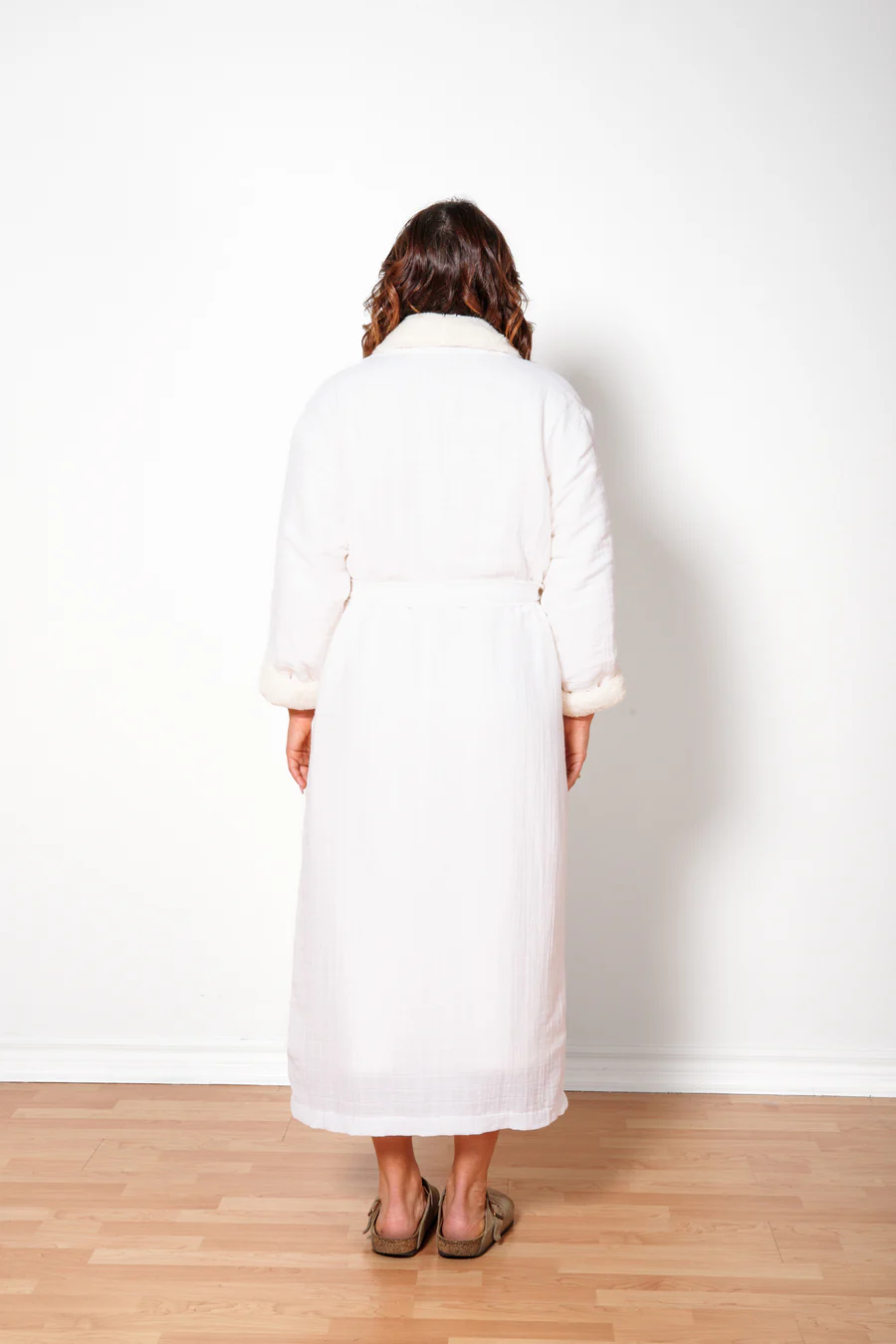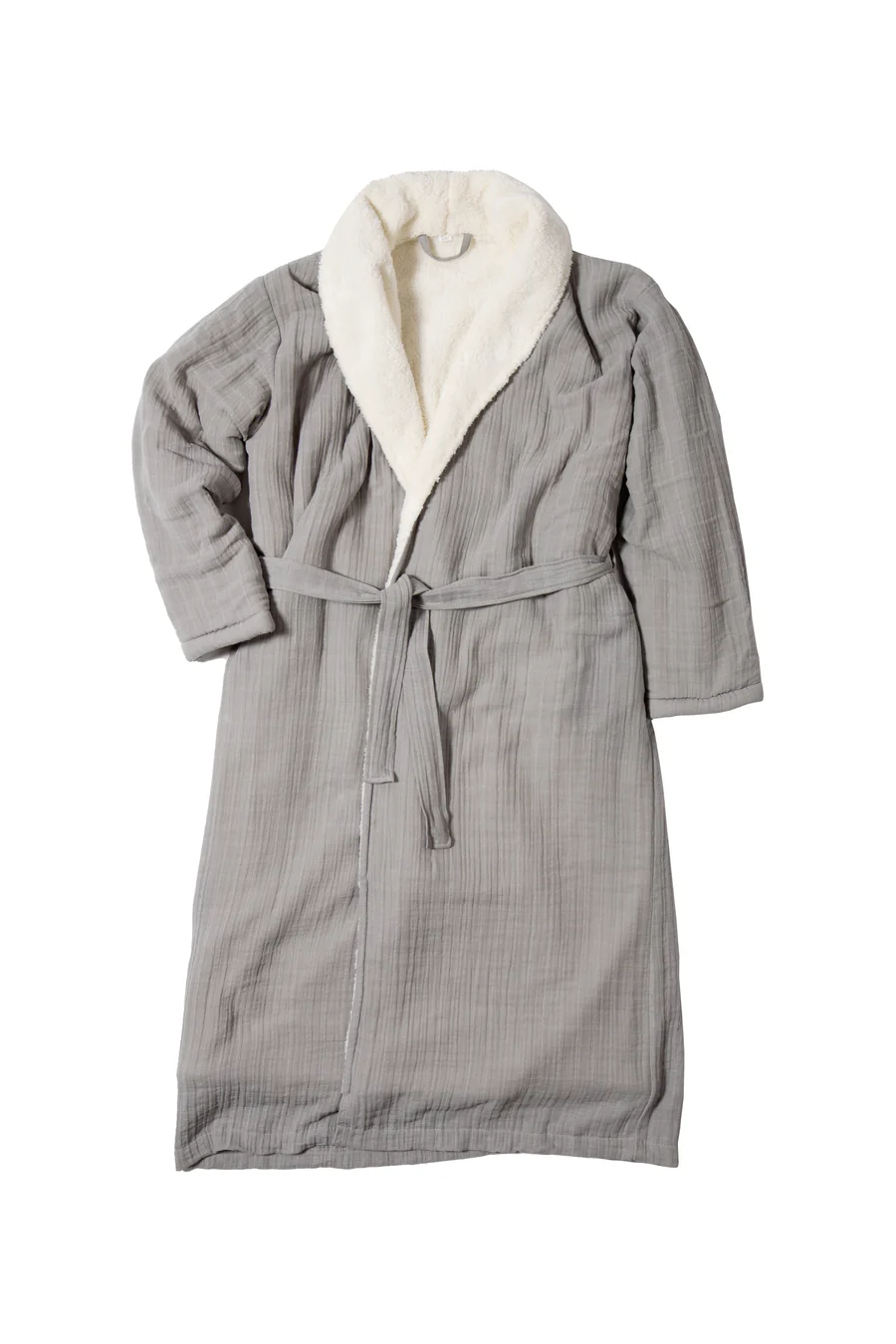 The upside to cooler weather means that you get to snuggle up in this ultra soft cotton fleece lined robe. These silky soft texture of the fleece offers a rich texture against the skin, while being lightweight and warm. Perfect for mornings around the house, lounging or for aprés bath and pool.
