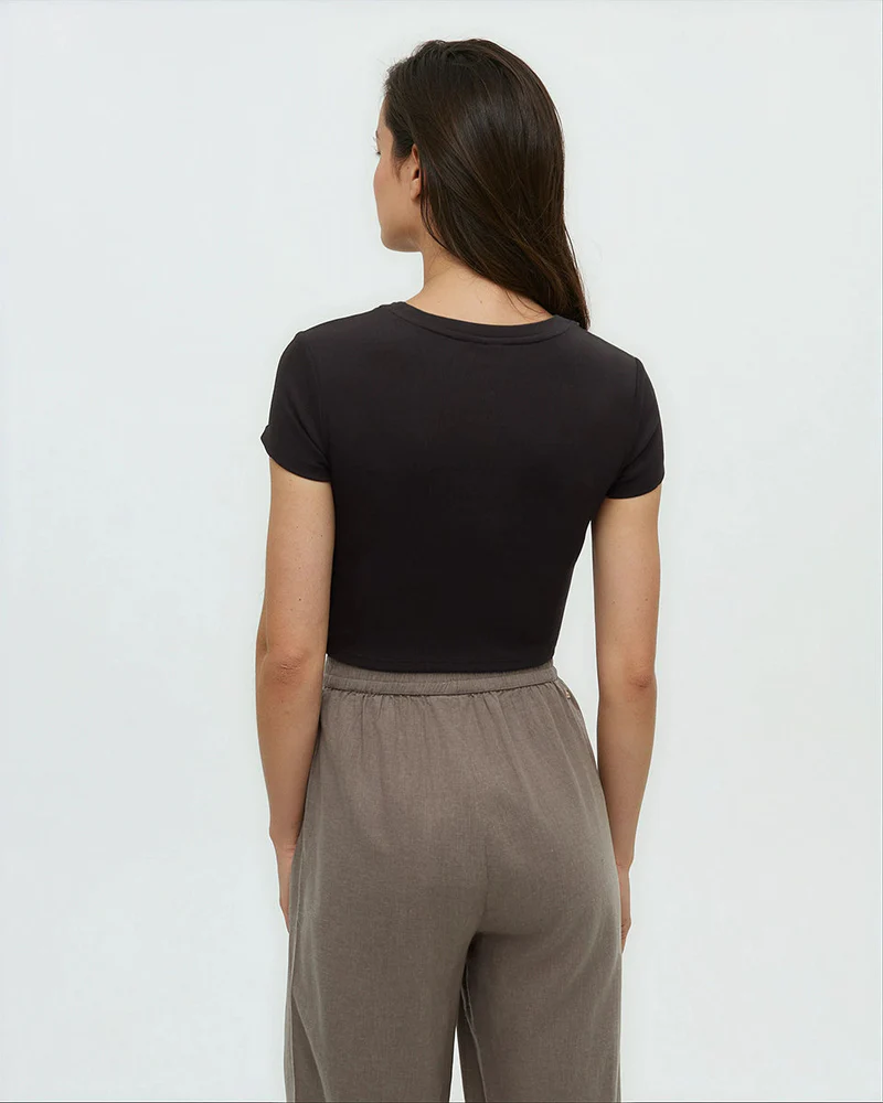 An everyday t-shirt with a twist — literally. This stretchy twist-front tee is crafted from silky soft EcoTech Rib Jersey that keeps you cool on the move and our planet cool for the future.